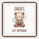 Pegatina Cuadrada Fiesta de Cumpleaños número uno de Fútbol de Osito