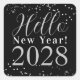 Pegatina Cuadrada Fiesta de Nochevieja Brillo Negro Plateado Hello