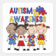 Pegatina Cuadrada Figura de palos Niños Concienciación sobre el auti