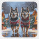 Pegatina Cuadrada Finnish Lapphund Dogs Christmas Snow Holiday