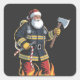 Pegatina Cuadrada Firefighter Fire Truck Christmas Tree Santa Xmas