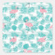 Pegatina Cuadrada Flamencos rosas, hojas de palma verdes, tropicales