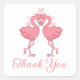Send your thanks with flamingo flair! This cheerful sticker features a cute flamingo couple sharing a kiss beneath floating hearts, with bold pink feathers and soft pink typography on a crisp white background. It’s perfect for sealing favor bags, decorating envelopes, or adding a playful touch to your thank you gifts. Whether you're celebrating a beach wedding, tropical ceremony, or Hawaiian luau, this sticker brings joy, romance, and personality to every detail. A sweet way to thank guests for their love, laughter, and unforgettable moments.