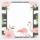 Pequeña impresión con toscos rayas blancas y negras y flamencos y flores rosadas.