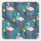 Pegatina Cuadrada Flamingo, toucano: patrón de hojas tropicales
