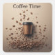 Pegatina Cuadrada Floating Coffee Cup With Coffee Beans