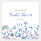 Pegatina cuadrado de ducha de novia floral azul. Es fácil cambiar el texto. acuarela de bonito floral para primavera y verano.