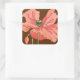 Pegatina Cuadrada Flor rosa grande con fondo rojo profundo