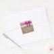 Pegatina Cuadrada Flor Rusa Rosa, Ducha de Brigada Burlap & Lace