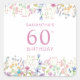 Pegatina cuadrado de 60 años de flor silvestre rosa. Es fácil cambiar el texto. Bonito acuarela floral por cumpleaños.