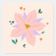 Flor tropical - Arte floral - fondo amarillo pastel, flor rosa rubor, hojas de lila - colores pastel.