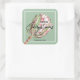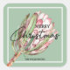 Un hermoso color de agua pintado a mano color rosa de protea floral floral sobre un fondo verde menta, estos grandes pegatinas cuadrados de 3" con Feliz Navidad y tu nombre son hermosos para acentuar tus favores de fiesta, embalaje de regalo y más. COINCIDIENDO elementos de nuestra colección.