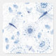 Pegatina Cuadrada Flora de la libélula Chinoiserie azul