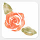 Pegatina Cuadrada Floral de rosa roja, ilustracion acuarela