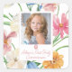 Celebra la Primera Comunión Sagrada de tu hijo con este encantador y vibrante Pegatina. El diseño presenta un impresionante fondo floral acuático en tonos rosa, crema y verde que simboliza el crecimiento y la renovación. Un fotograma centrado añade un toque personal, mientras que la cruz rosa resalta el significado sagrado del evento. El texto se presenta de forma elegante en una mezcla de guiones y tipos de letra serif, garantizando tanto la belleza como la legibilidad. Perfecto para marcar este alegre hito espiritual en estilo. B010