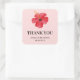 Pegatina Cuadrada Floral Tropical Pink Flower Wedding Thank You