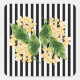 Pegatina Cuadrada Flores amarillas sobre rayas negras y blancas