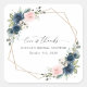 Añada un toque personal a su celebración de la ducha de novia con estos artículos de fiesta elegantes y memorables. El diseño presenta flores de color azul marino y rosa oscuro, vegetación y marco dorado sobre fondo blanco.