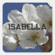 Fotografía macro en flor de cerezo blanco, cielo azul y una plantilla de nombre personalizable.