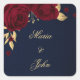 Pegatina Cuadrada flores burdeos hojas de oro azul marino