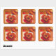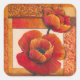 Pegatina Cuadrada Flores de amapola en Tan y fondo Naranja