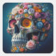 cráneo humano rodeado de flores vibrantes de varios colores. El fondo oscuro hace que las flores se destaquen, creando un sorprendente contraste. Esta combinación de vida (flores) y muerte (calavera) evoca una poderosa narrativa visual sobre la coexistencia de la belleza y la decadencia.