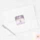 Pegatina Cuadrada Flores de jardín morado y rosa primer cumpleaños