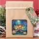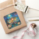 Pegatina Cuadrada Flores de Lotus de vidrio manchado en la luna