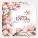 Pegatina Cuadrada Flores de magnolia rosadas y pájaros Feliz Cumplea