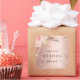 Para una despedida de soltera elegante y moderna. Un fondo metálico falso de oro rosa. Decorado con flores rosadas, hierba de pampas y polvo brillante de oro rosa. Personaliza y añade un nombre.
