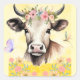 Hermosos pegatinas de la cadena acrílica de la vaca con flores, mariposa y libélula, sobre un fondo amarillo carnicero. Aporte encantador a su colección de pegatinas, envoltura de regalos, escritura de cartas o tarjetas, reserva de recortes o una idea de regalo para alguien que ama las vacas.
