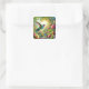 Pegatina Cuadrada Flores ricas de fantasía Hummingbird arcoiris