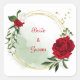 Pegatina Cuadrada Flores rojas y blancas verde corona dorada