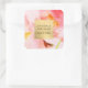 Pegatina Cuadrada Flores rosadas de acuarela de lujo con marco de fa