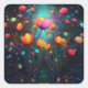 Pegatina Cuadrada Flores salvajes brillantes mágicas arco iris sobre