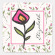 Pegatinas con tu texto personalizado y una flor rosa bonito dentro de un marco cuadrado con un borde rosa. El fondo es un patrón con flores silvestres rosas dibujadas a mano con tallos verdes largos y hojas sobre un fondo de color blanco concha de huevo. El diseño también está decorado con círculos y estribos rosas. Diseño floral de bonito y capricho.