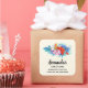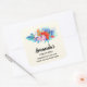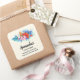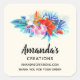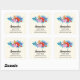 Pegatinas de negocios con un vibrante y hermoso ramo de flores tropicales. Orquídeas, hibiscos y hojas tropicales. Color rosa, turquesa, rojo y azul.