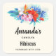 Jabón, velas (u otros) pegatinas de productos de negocios con un vibrante y hermoso ramo de flores tropicales. Orquídeas, hibiscos y hojas tropicales. Color rosa, turquesa, rojo y azul.
