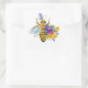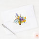 Artistically drawn, flower, honey bee with contrasting colors, yellow, bright, blooming california poppy and blue wild plants on white background.