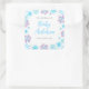 Pegatina Cuadrada Folleto de Baby Shower sobre copos de nieve morado
