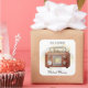 El diseño incluye un ilustracion acuarela de una radio portátil de madera antigua. Personalice como desee.