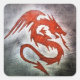 Pegatina Cuadrada Fondo negro del dragón rojo