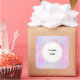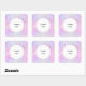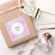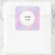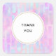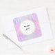 Gracias pegatinas con un patrón de fondo abstracto. Las acuarelas rosas moradas y azules componen este diseño artístico que presenta formas rectangulares verticales sobre un fondo suave de mosaico. Un círculo en la cima con un falso borde de Relieve metalizado dorado, tu texto personalizado en el interior.
