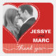 Pegatina Cuadrada Foto del corazón punteado Gracias coral rojo