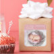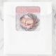 Pegatina Cuadrada Foto moderna de bebé | Rosa y blanco | Cita