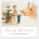 Pegatina Cuadrada Foto moderna de Navidad con letra caligráfica