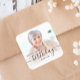 Modernos pegatinas de la fiesta de cumpleaños con una foto personalizado. Reemplace fácilmente la imagen de muestra con una foto del invitado de honor. La palabra "cumpleaños" aparece en un elegante guión de escritura a mano en negro. Personalice el texto con el nombre y el año de cumpleaños en el tipo de letra sans serif negro. Una superposición de degradado blanco ayuda a hacer que el texto aparezca.