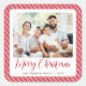 Celebra las fiestas con este pegatina navideño rojo y blanco festividad a rayas. Con un moderno borde de caña de caramelos, una elegante tipografía de escritura roja y una foto familiar favorita, este pegatina de vacaciones es el detalle perfecto para sus regalos de vacaciones y tarjetas de vacaciones. Personaliza con tu apellido y año.