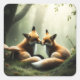 Pegatina Cuadrada Fox Cuddle en un bosque polvoriento