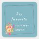 Pegatina Cuadrada Frame with Roses, Wedding style on retro blue